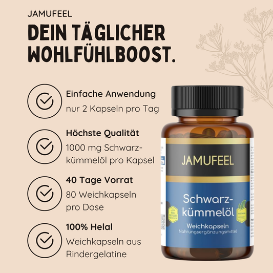 Schwarzkümmel ist seit Jahrhunderten als vielseitiges Naturheilmittel bekannt. Ob als kaltgepresstes Öl oder in praktischer Kapselform – er unterstützt das Immunsystem, wirkt entzündungshemmend und kann bei Allergien, Hautproblemen oder Verdauungsbeschwerden helfen.