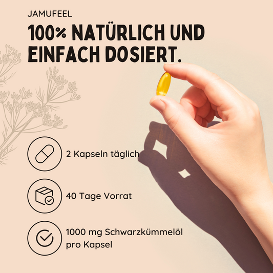 Schwarzkümmel ist seit Jahrhunderten als vielseitiges Naturheilmittel bekannt. Ob als kaltgepresstes Öl oder in praktischer Kapselform – er unterstützt das Immunsystem, wirkt entzündungshemmend und kann bei Allergien, Hautproblemen oder Verdauungsbeschwerden helfen.